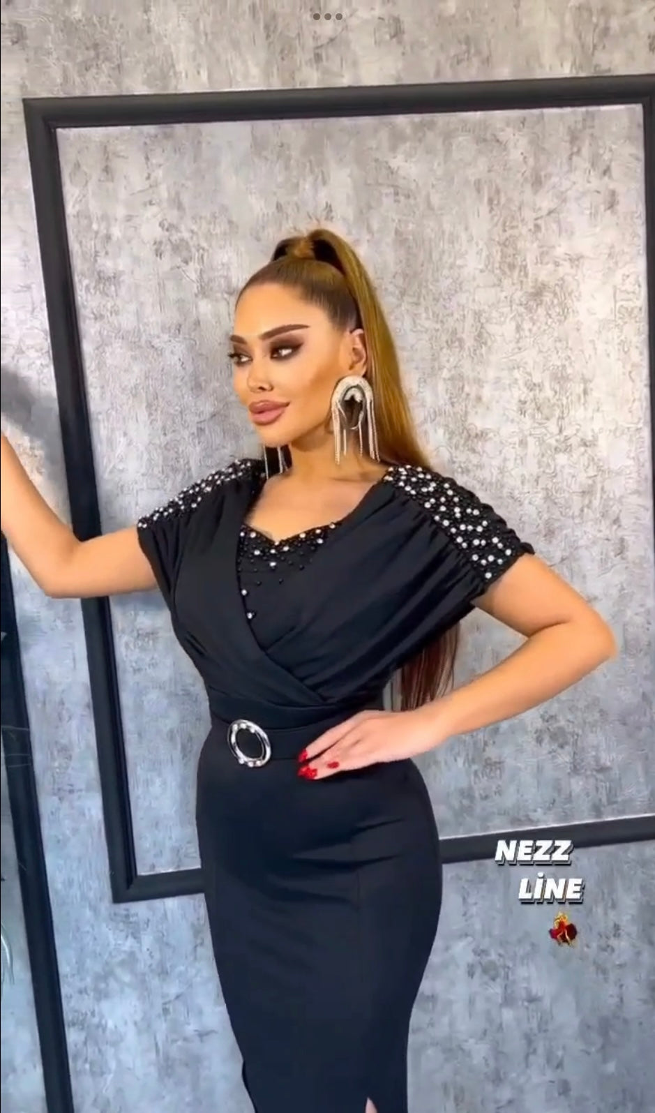 Μαύρο μίντι φόρεμα με θηλυκή και κομψή γραμμή που αναδεικνύει τη σιλουέτα. Οι λαμπερές λεπτομέρειες στους ώμους και το σταυρωτό ντεκολτέ προσθέτουν φινέτσα, ενώ η ζώνη με μεταλλικό αξεσουάρ τονίζει τη μέση. Το πλαϊνό σκίσιμο χαρίζει μια σαγηνευτική αύρα, διατηρώντας παράλληλα την κλασική κομψότητα.